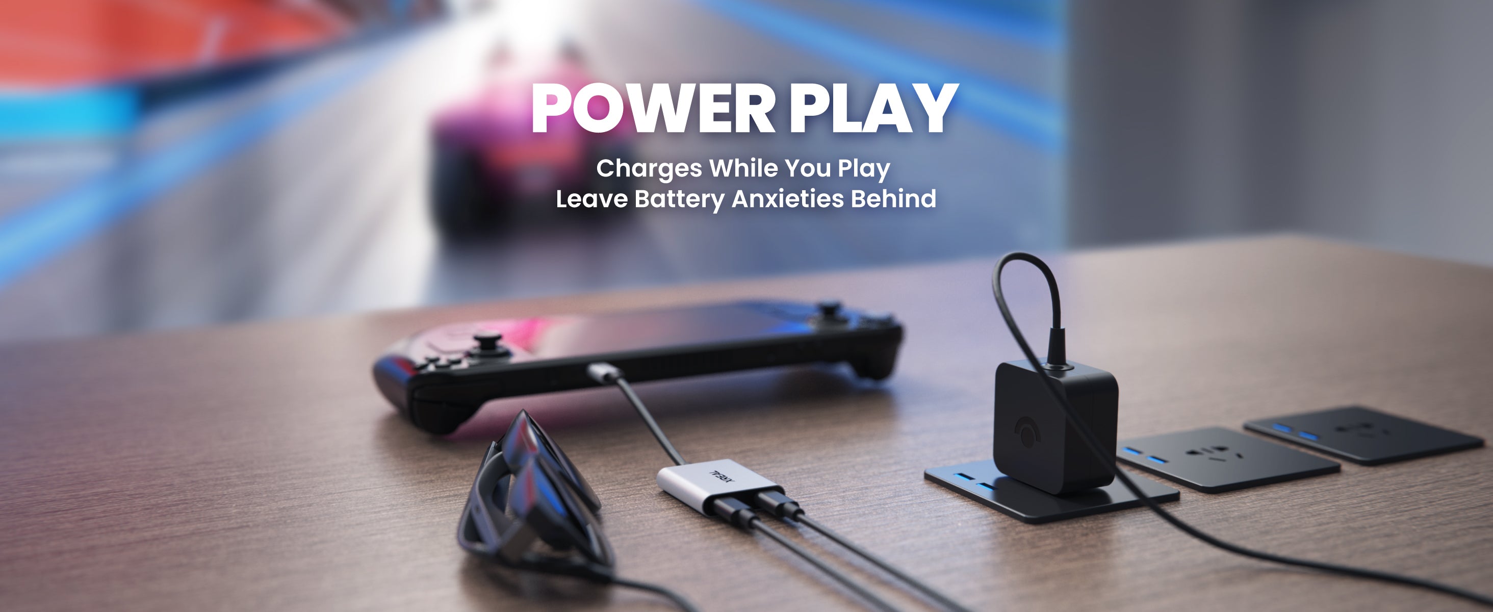 Power Play : dynamisez vos sessions de jeu et votre streaming tout en utilisant les lunettes XREAL AR. Chargez et jouez, pour que vos aventures de jeu ne soient plus jamais interrompues par une batterie déchargée.