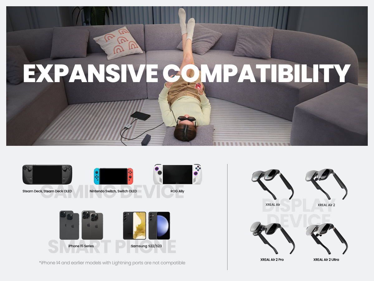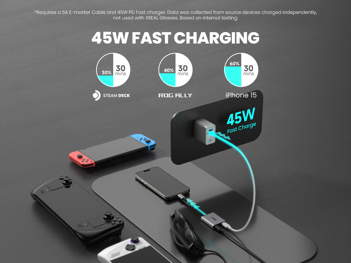 Charge rapide de 45 W : offre une charge haute vitesse de 45 W pour Steam Deck ou iPhone 15 et d'autres appareils, tout en utilisant vos lunettes XREAL AR.