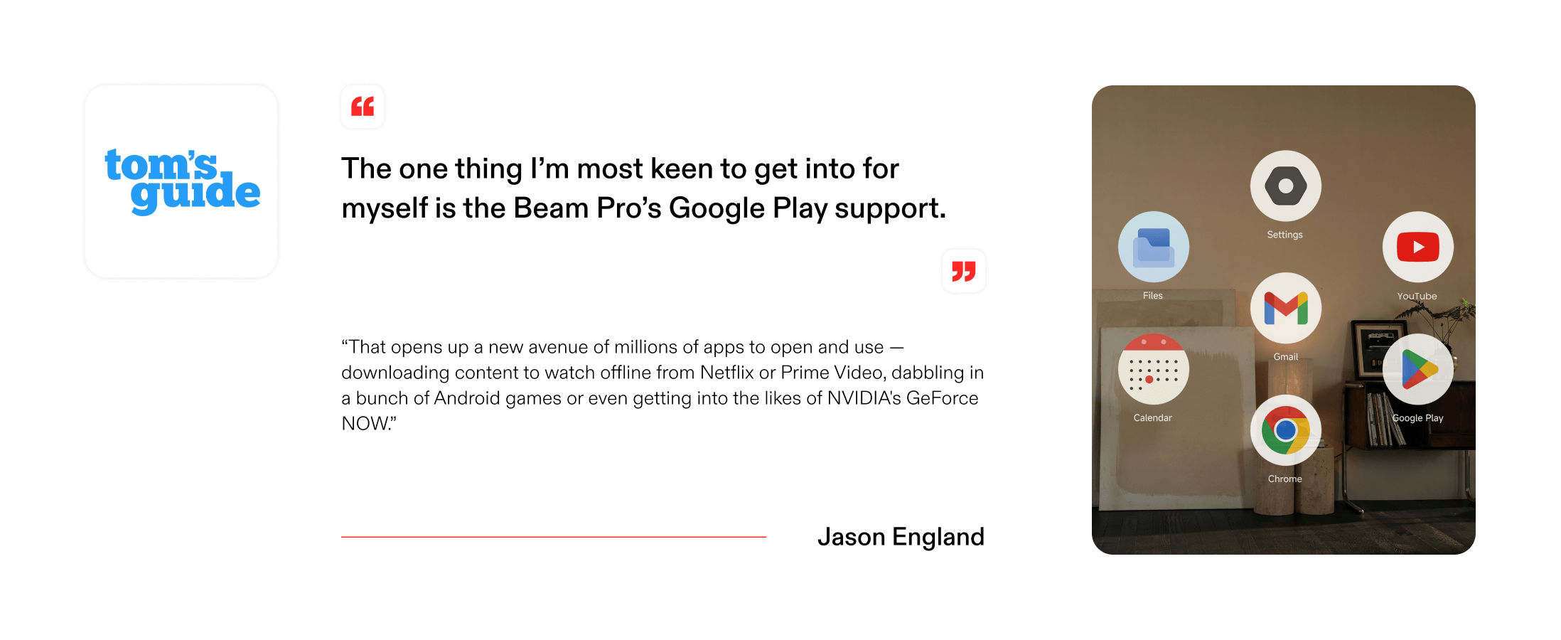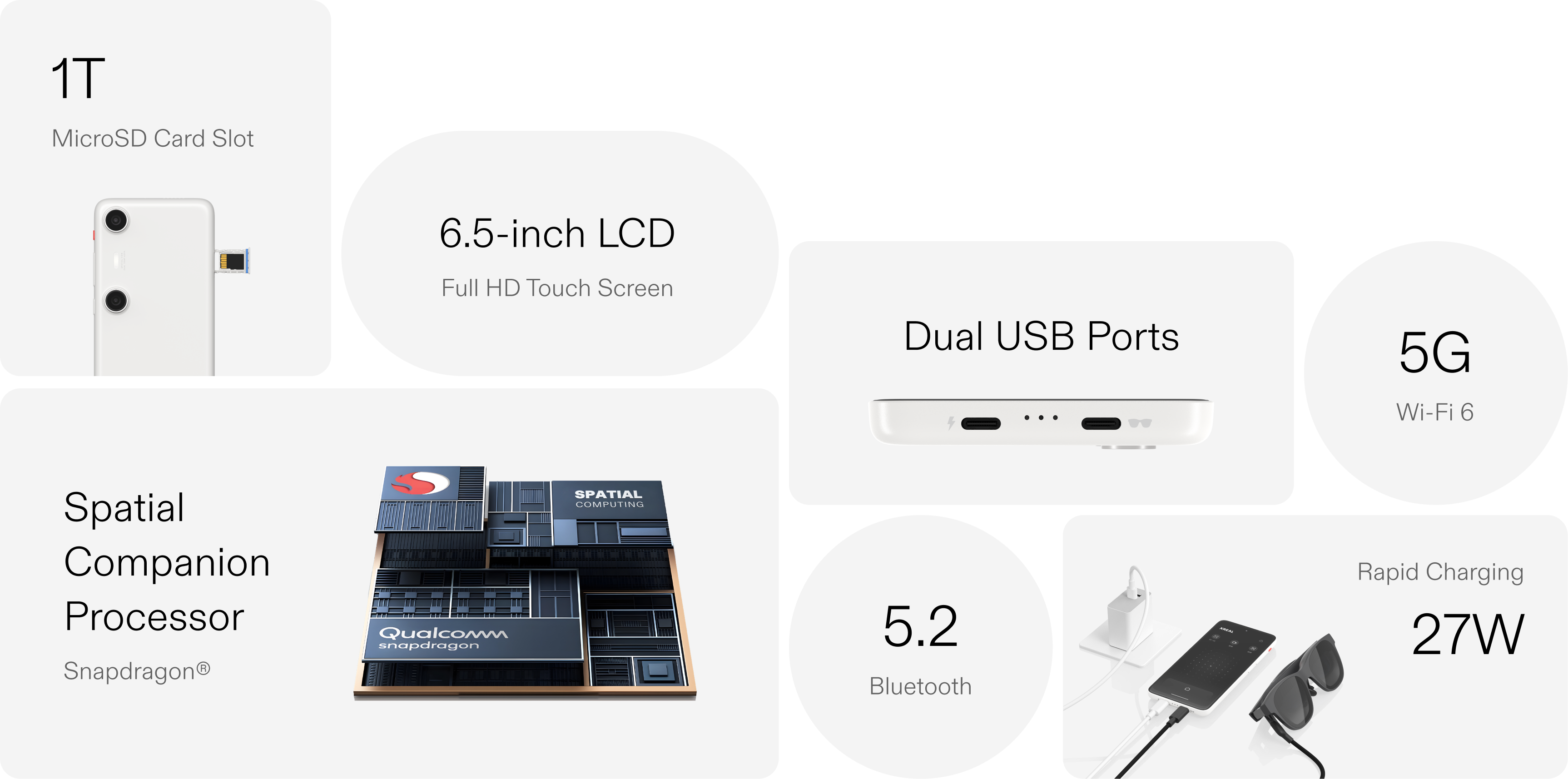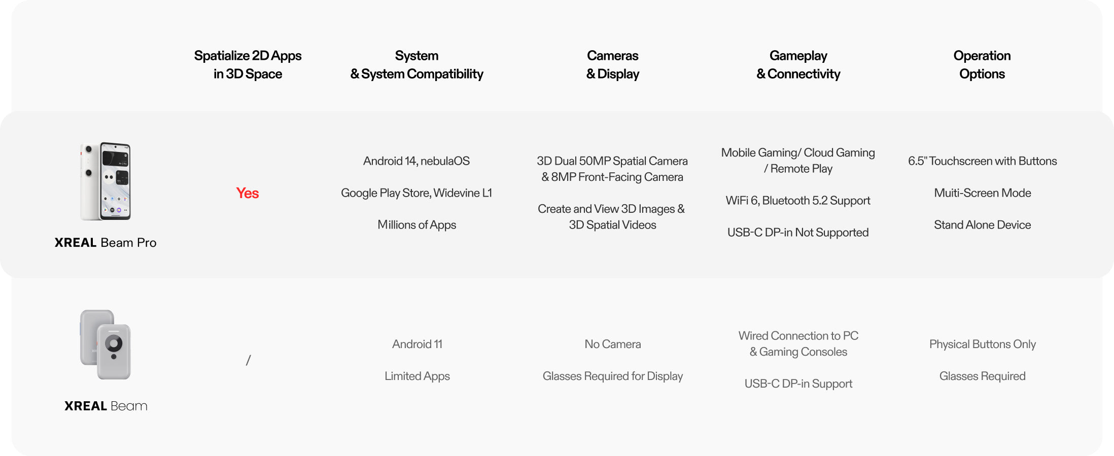 XREAL Beam Pro is a spatial computing device designed specifically for XREAL AR glasses. Like a phone, it supports a vast array of mobile app content, with zero-barrier interaction, allowing for effortless hovering in a large-screen space for binge-watching and gaming on the go. It also supports true 3D image capture, delivering smoother, more comfortable, more versatile, and higher-quality AR spatial experiences for users. For more info,