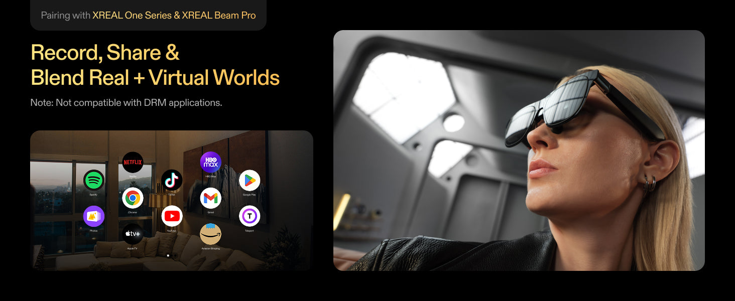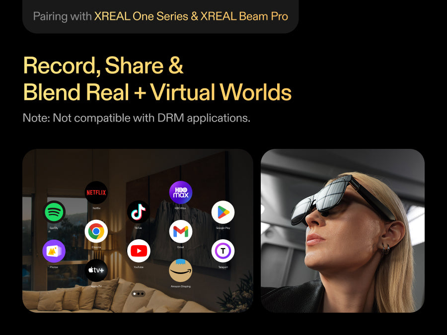 *XREAL Eye can be used to take pictures with XREAL One Glasses, however XREAL Beam Pro is required to shoot a mixed-reality video.